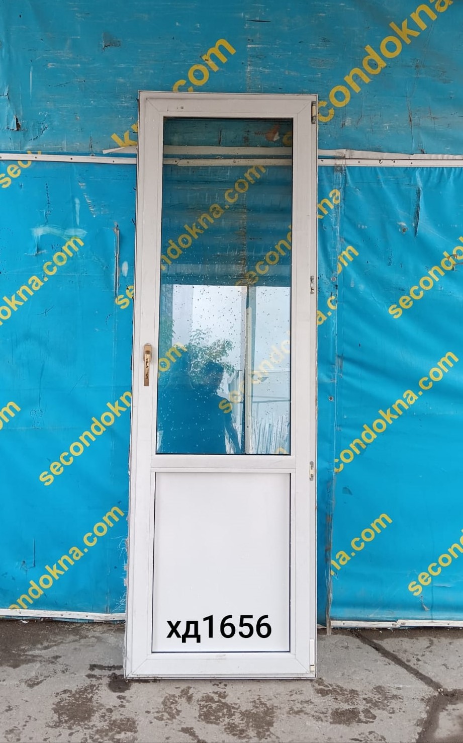 Пластиковая балконная дверь Б/У с однокамерным (2 стекла) стеклопакетом.