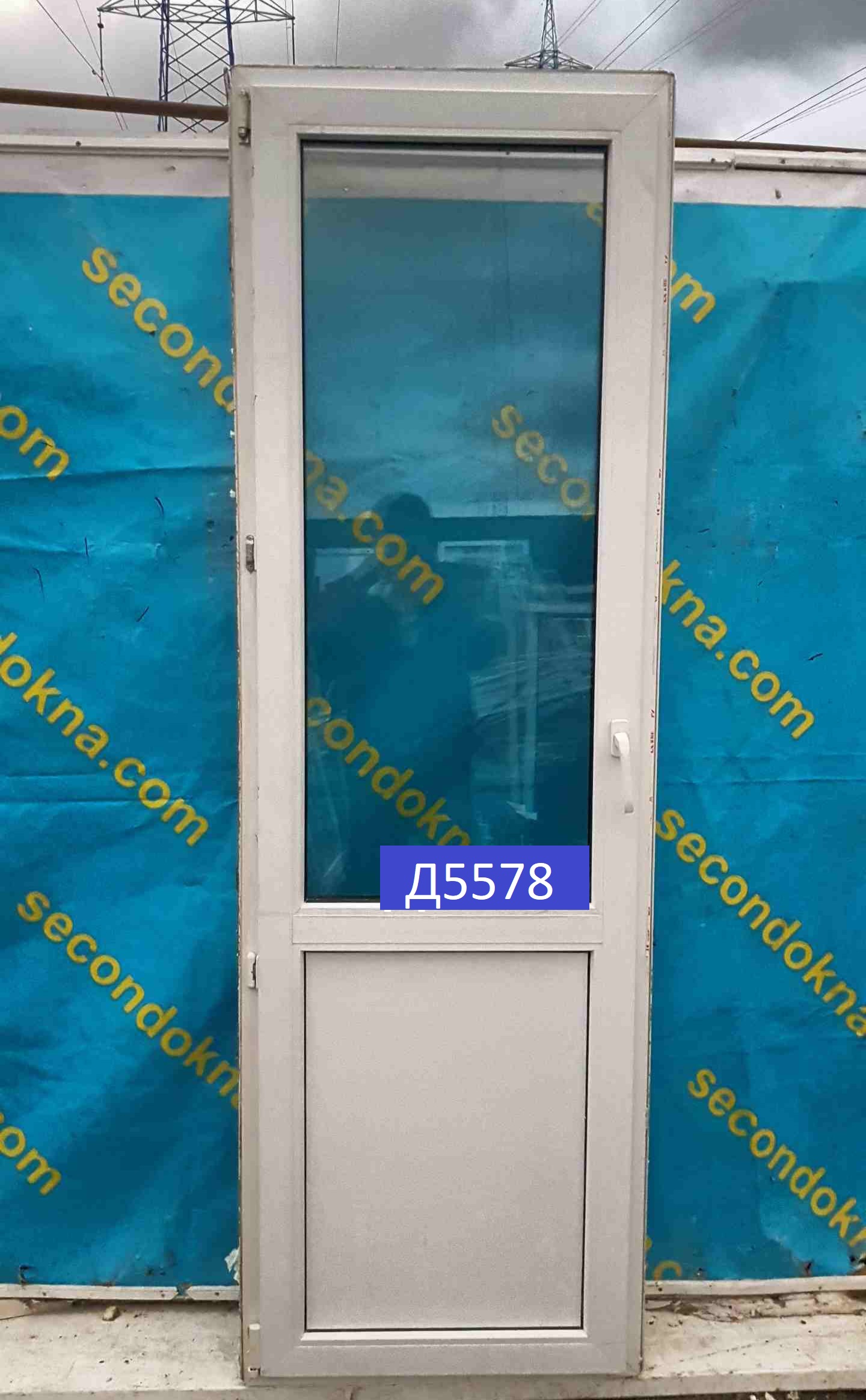 Пластиковая балконная дверь Б/У с однокамерным (2 стекла) стеклопакетом.