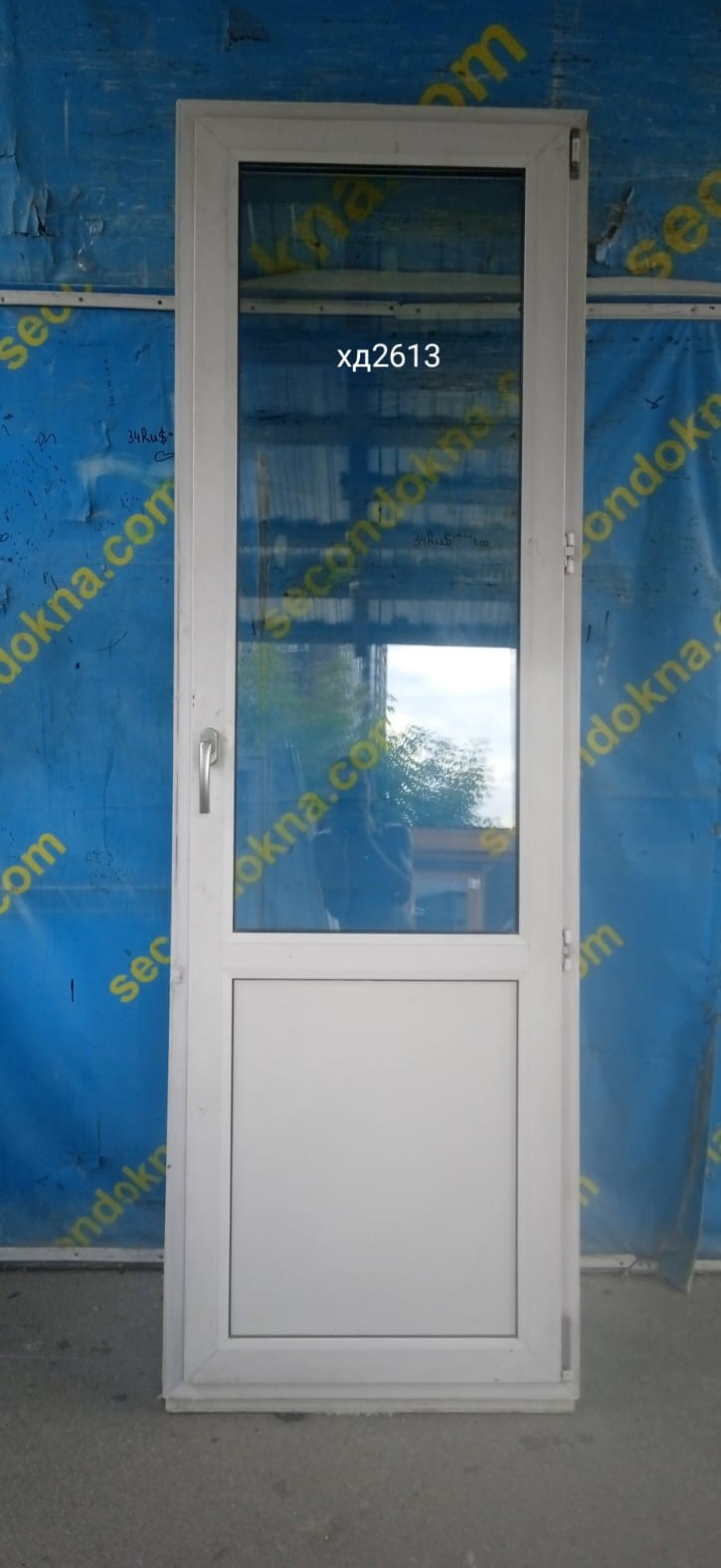 Пластиковая балконная дверь Б/У с двухкамерным (3 стекла) стеклопакетом.