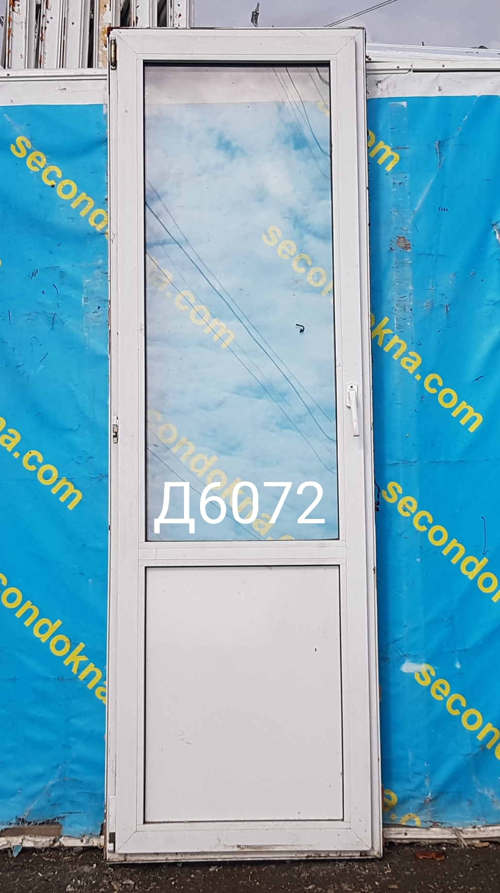 Пластиковая балконная дверь Б/У с однокамерным (2 стекла) стеклопакетом.