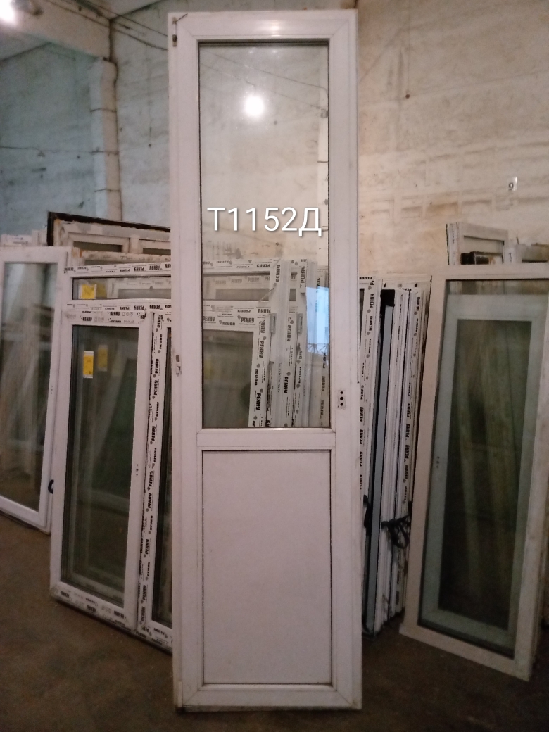 Пластиковая балконная дверь Б/У с однокамерным (2 стекла) стеклопакетом.