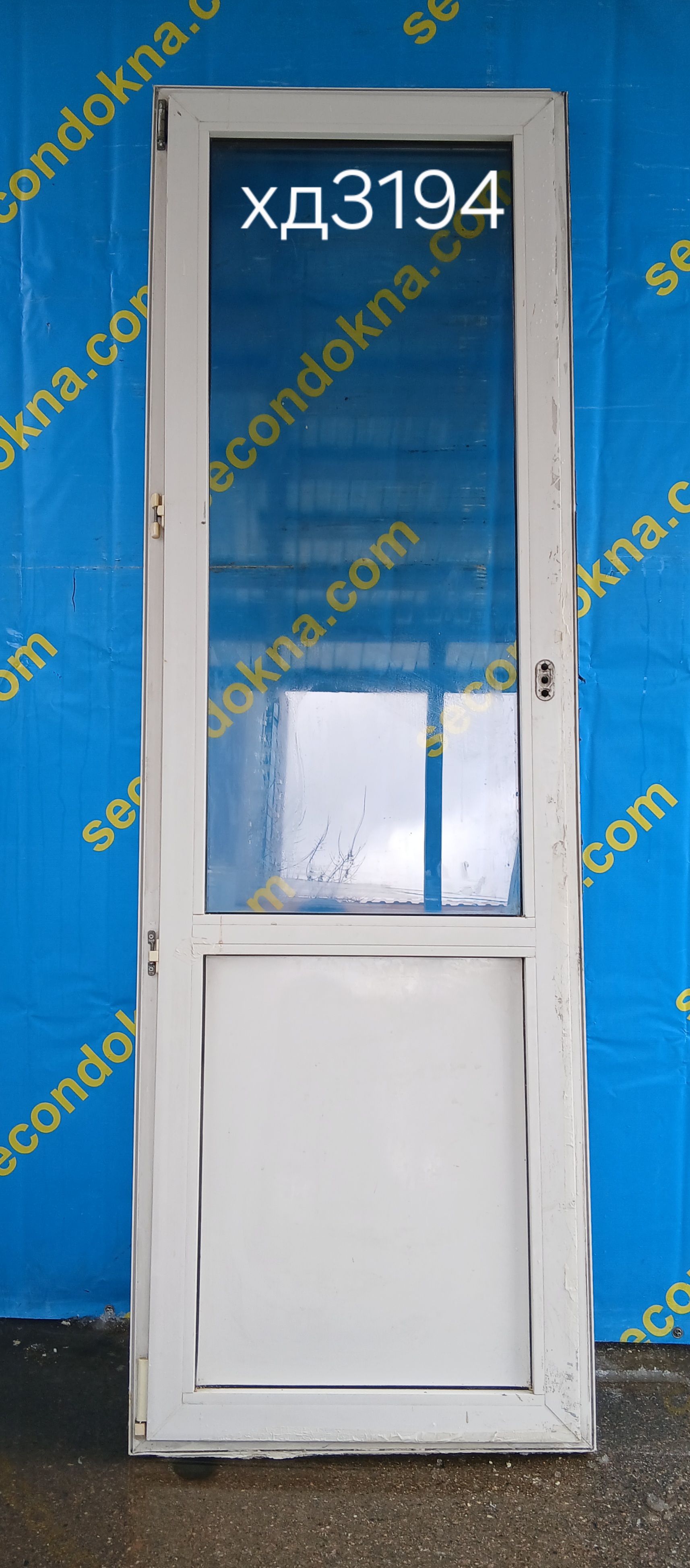 Пластиковая балконная дверь Б/У с однокамерным (2 стекла) стеклопакетом.