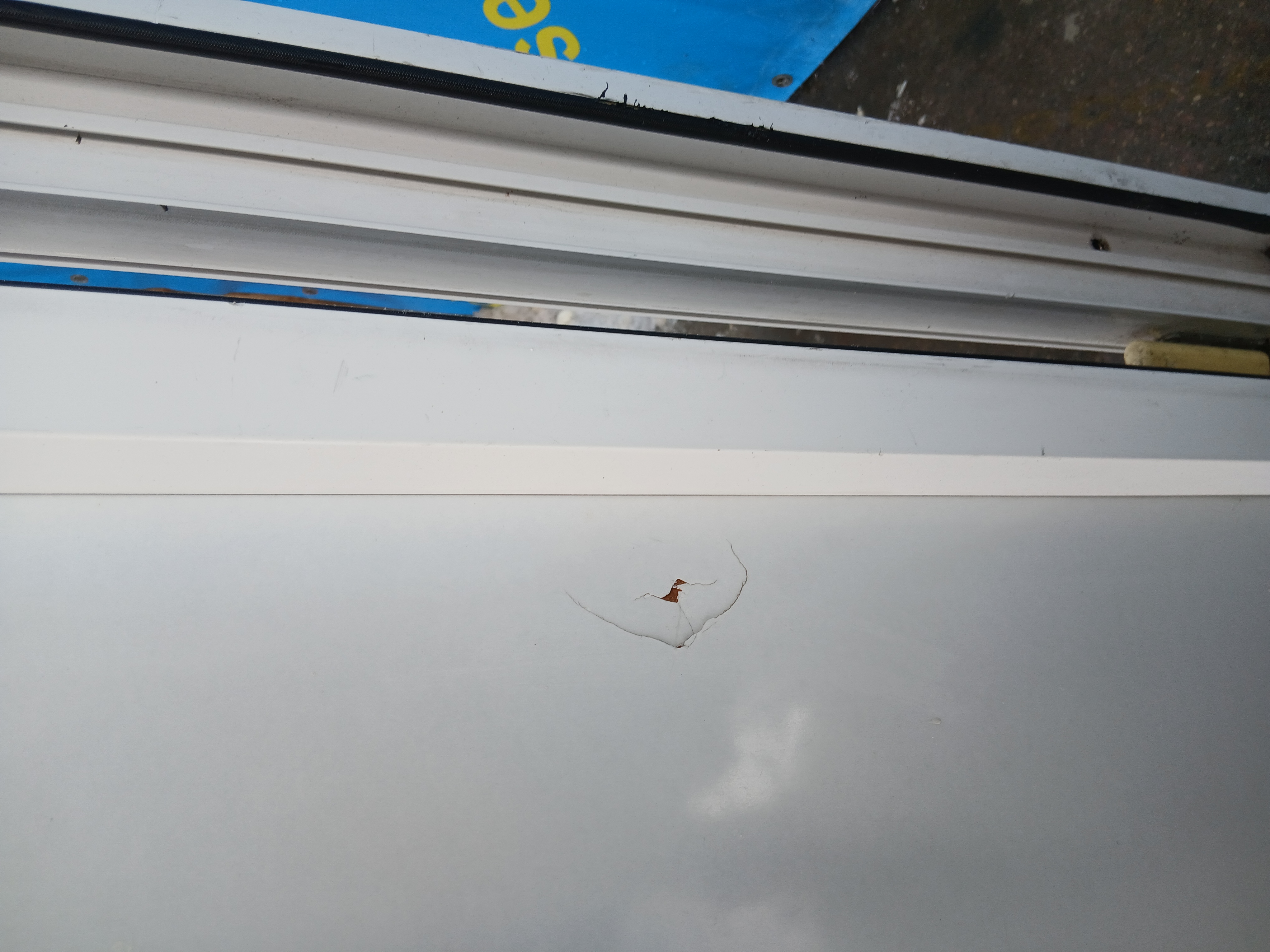 Скол на сэндвич-панели с фасада (фото).