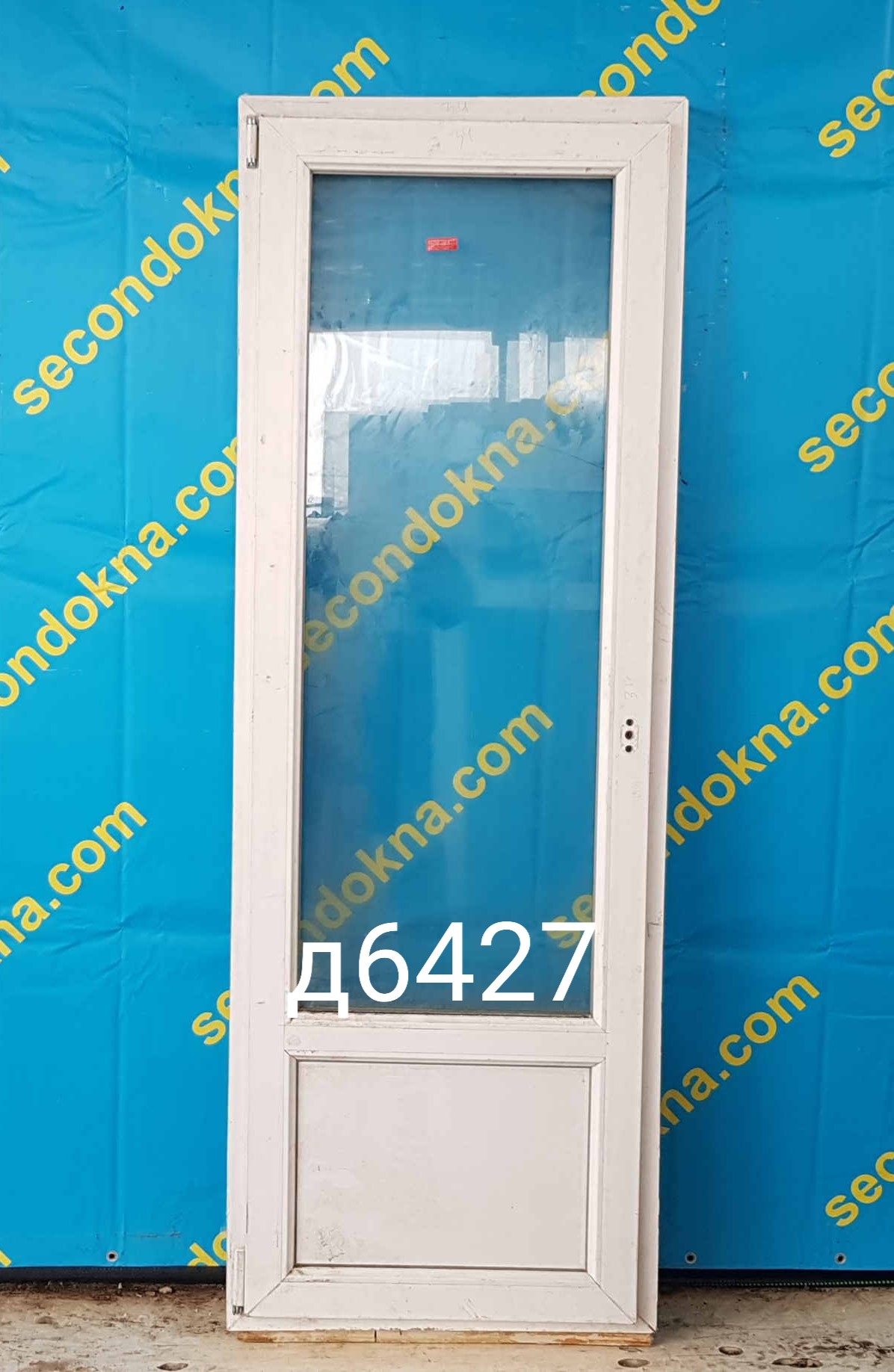 Пластиковая балконная дверь Б/У с однокамерным (2 стекла) стеклопакетом.