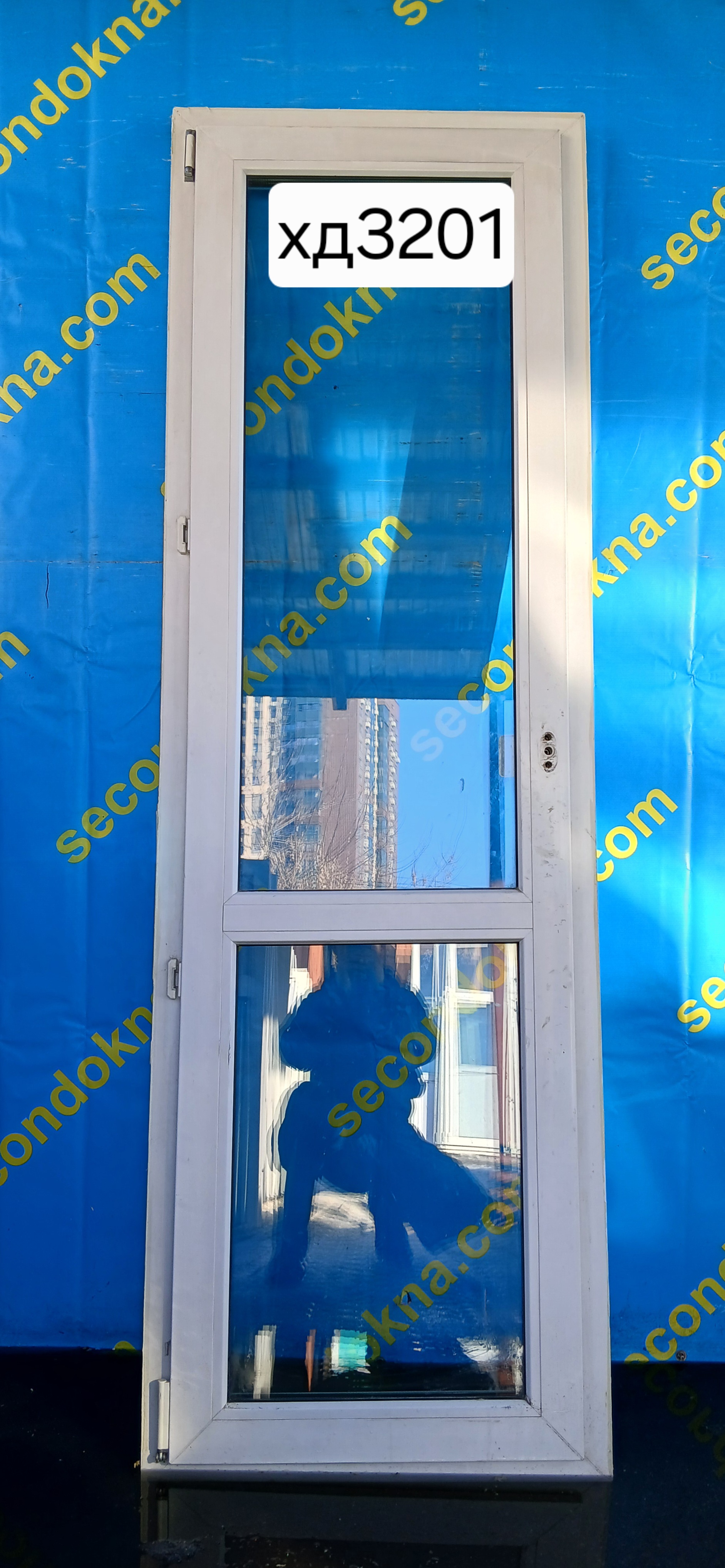 Пластиковая балконная дверь Б/У с двухкамерным (3 стекла) стеклопакетом.