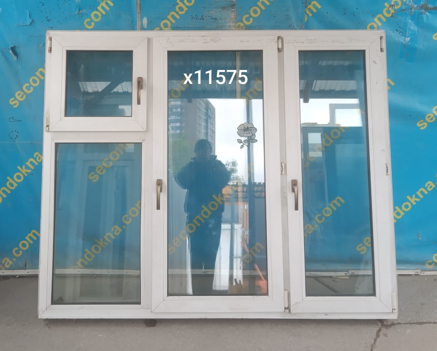 Пластиковое окно Б/У с двухкамерным (3 стекла) стеклопакетом.
