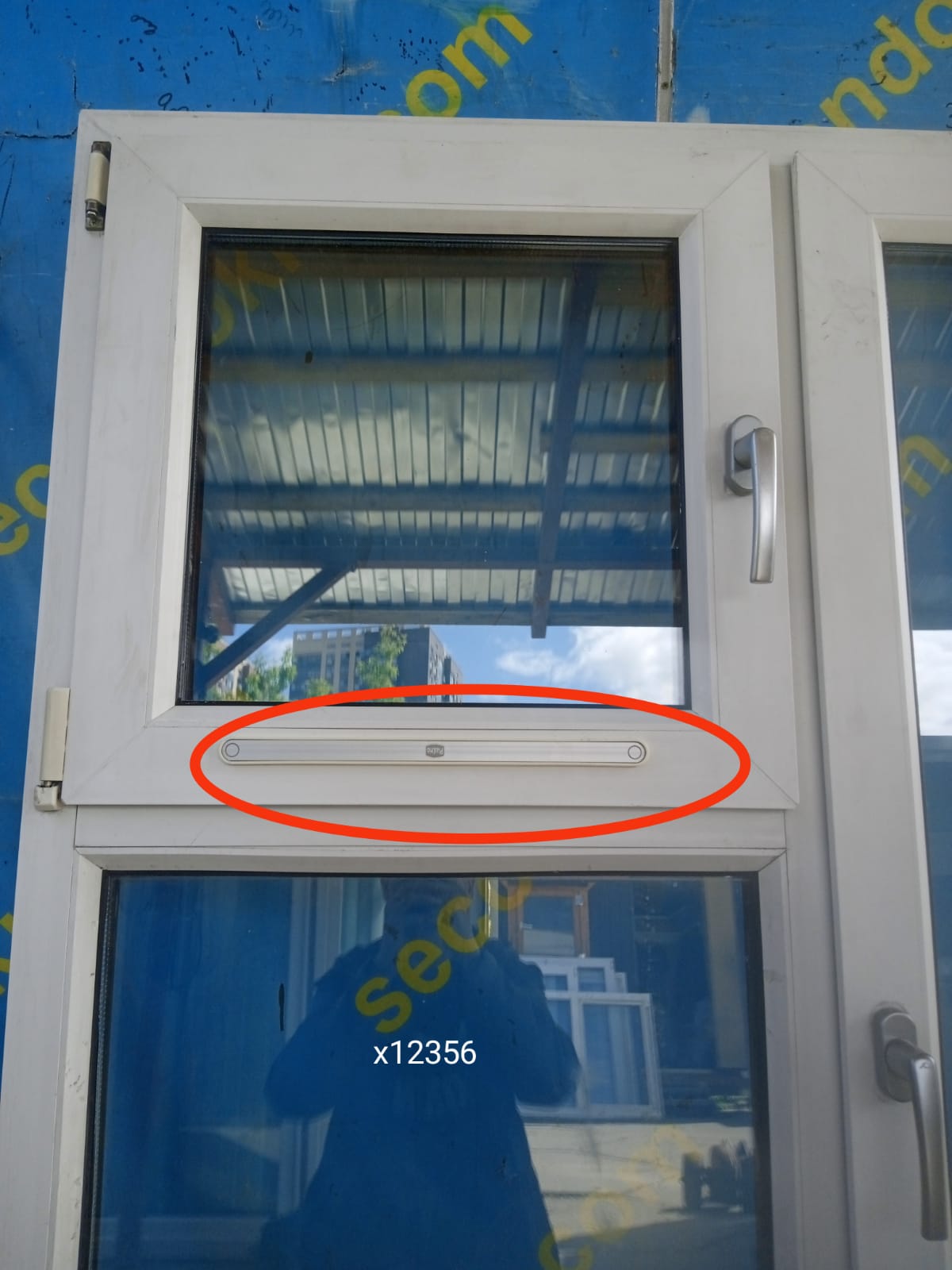 В верхней части поворотная створка (форточка), ручка справа.