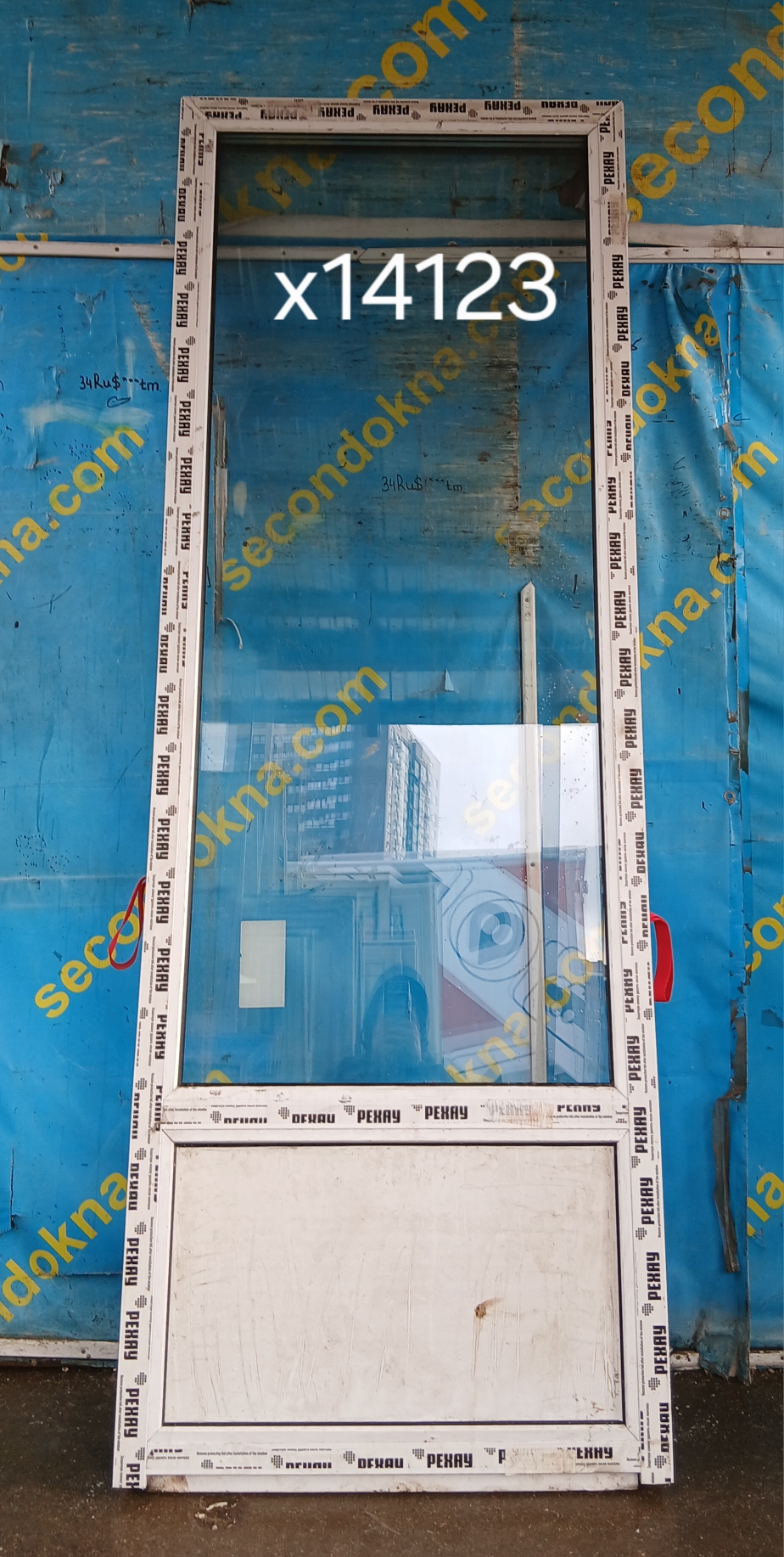 Окно глухое (не открывается), разделено импостом на две (вверху-прозрачная и внизу-непрозрачная, сэндвич-панель) глухие части.