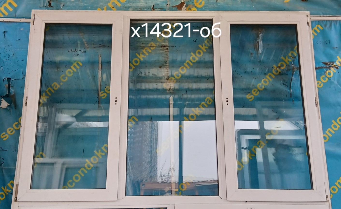 Пластиковое окно Б/У с двухкамерным (3 стекла) стеклопакетом.