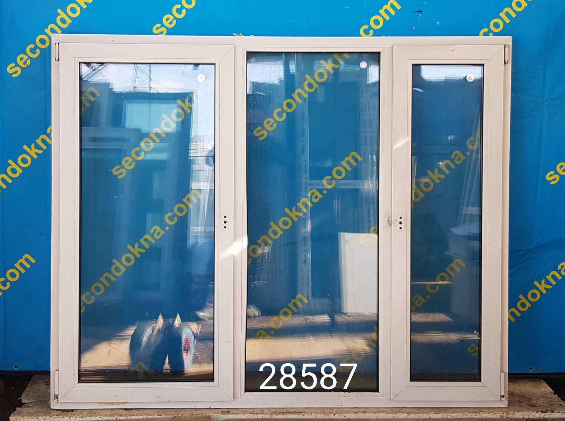Пластиковое окно Б/У с двухкамерным (3 стекла) стеклопакетом.