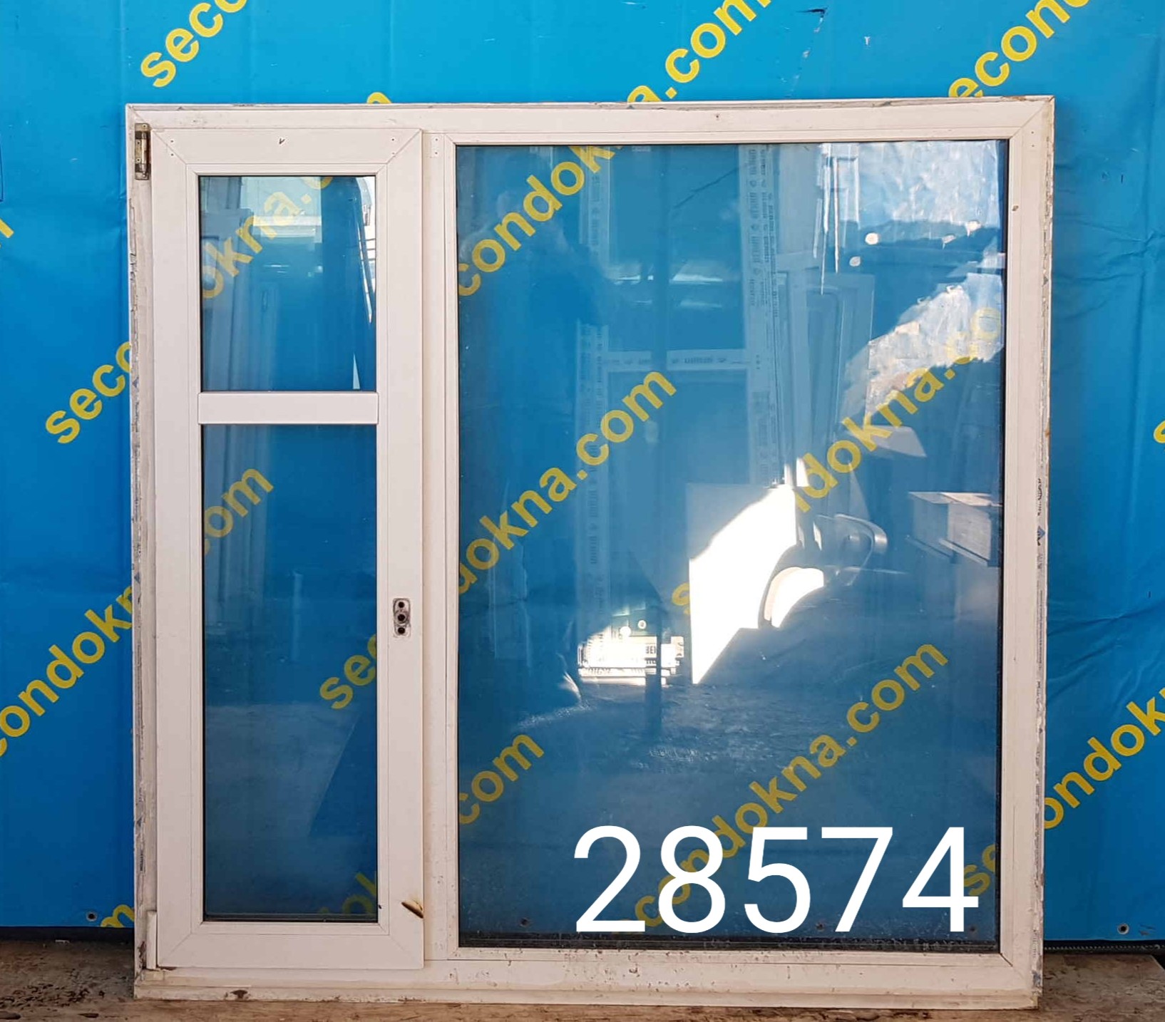 Пластиковое окно Б/У с двухкамерным (3 стекла) стеклопакетом.