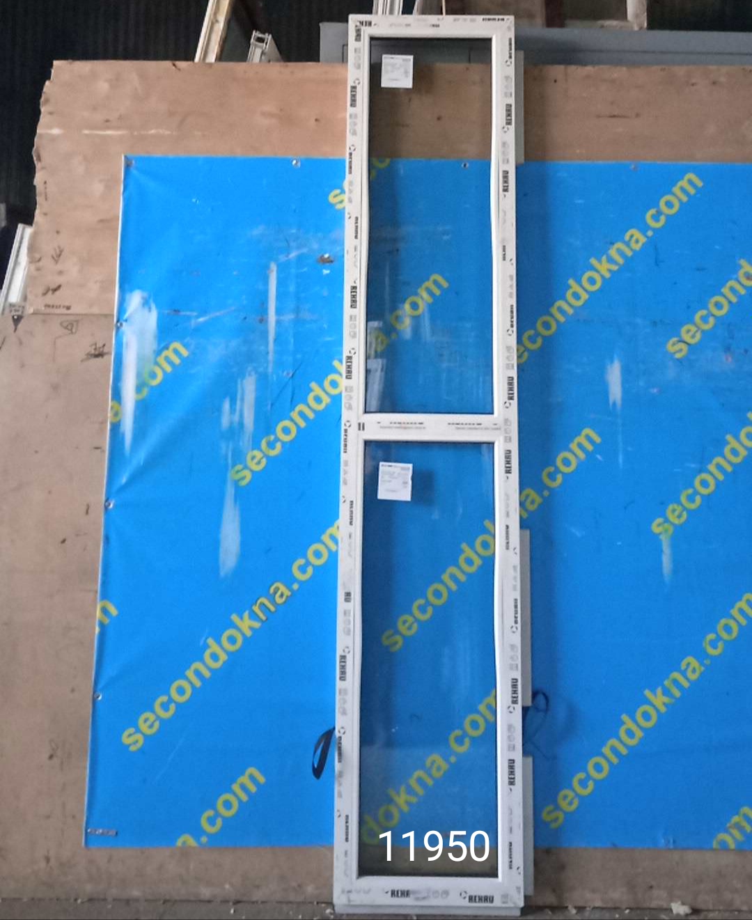 Окно глухое (не открывается), разделено импостом на две (вверху и внизу) глухие части.