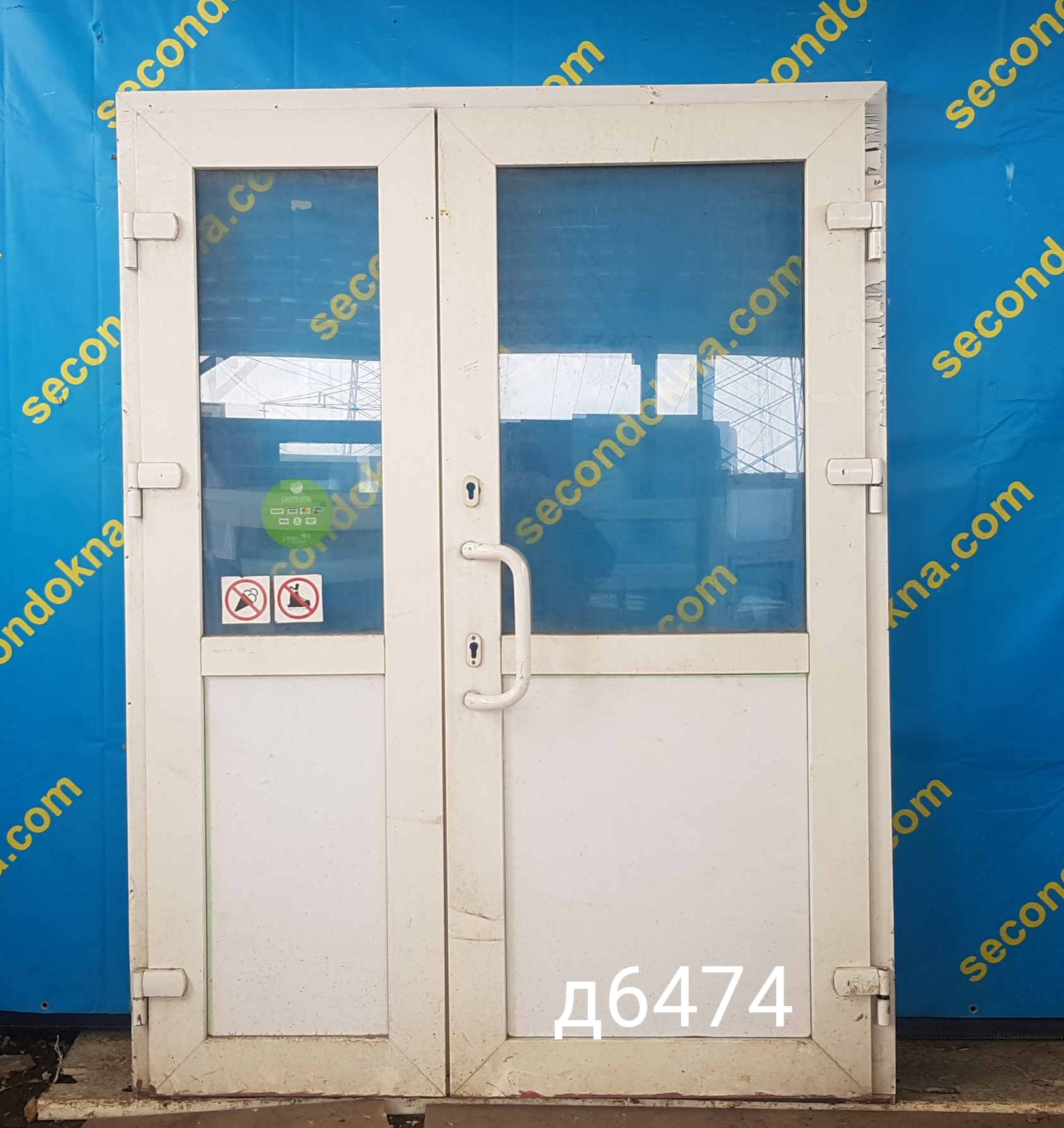 Пластиковая входная штульповая дверь Б/У с однокамерным (2 стекла) стеклопакетом.